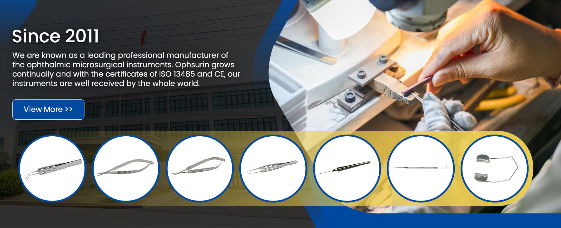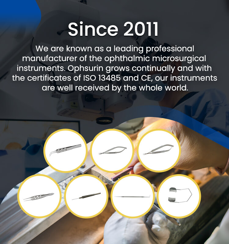 About Us Ophsurin has been established in China since 2011. We are known as a leading professional manufacturer of the ophthalmic microsurgical instruments. Ophsurin grows continually and with the certificates of ISO 13485 and CE, our instruments are well received by the whole world.Ophsurin’s instruments in